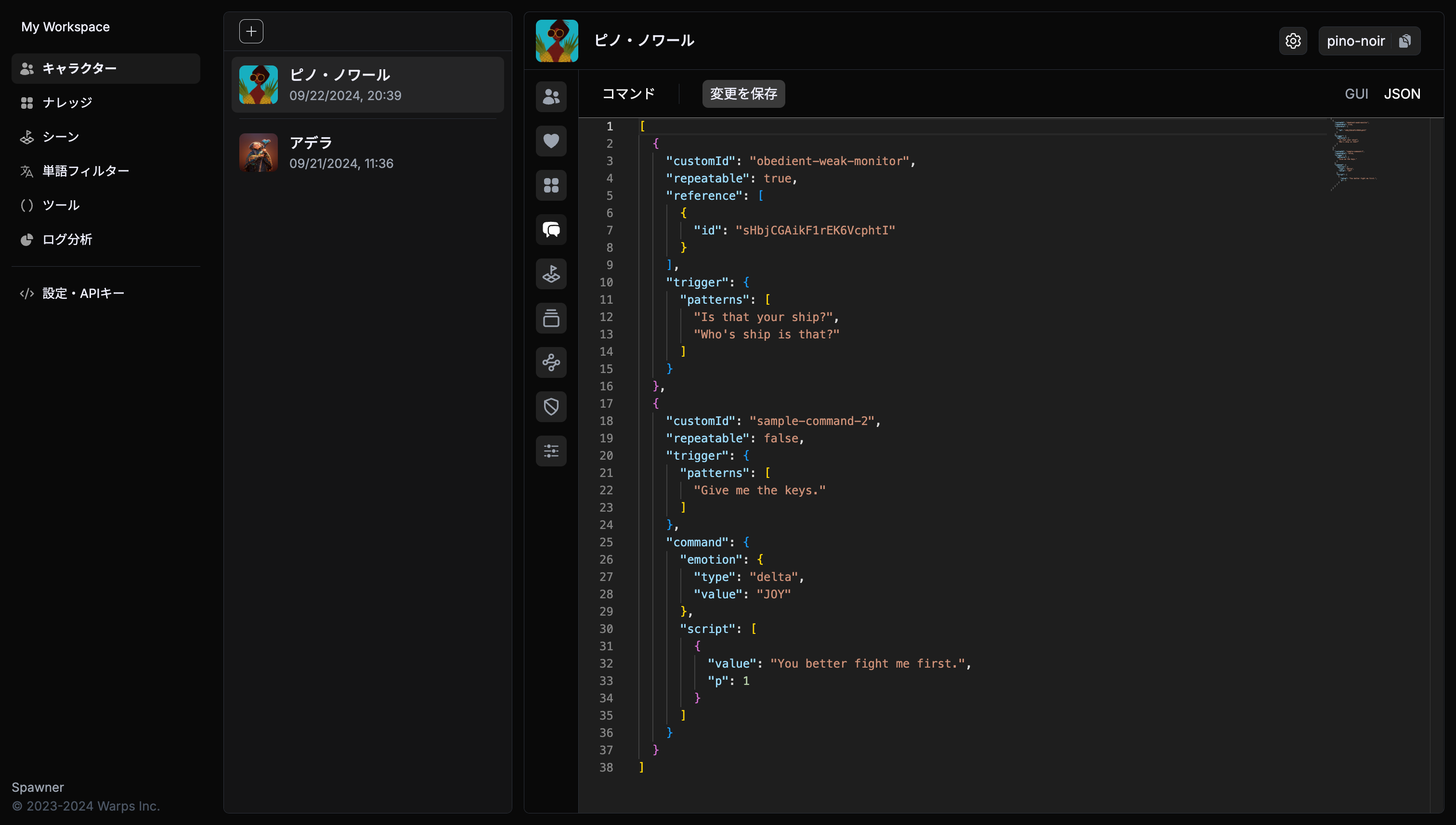 JSON モードを選択することで、コマンドをコードとして管理することができます。